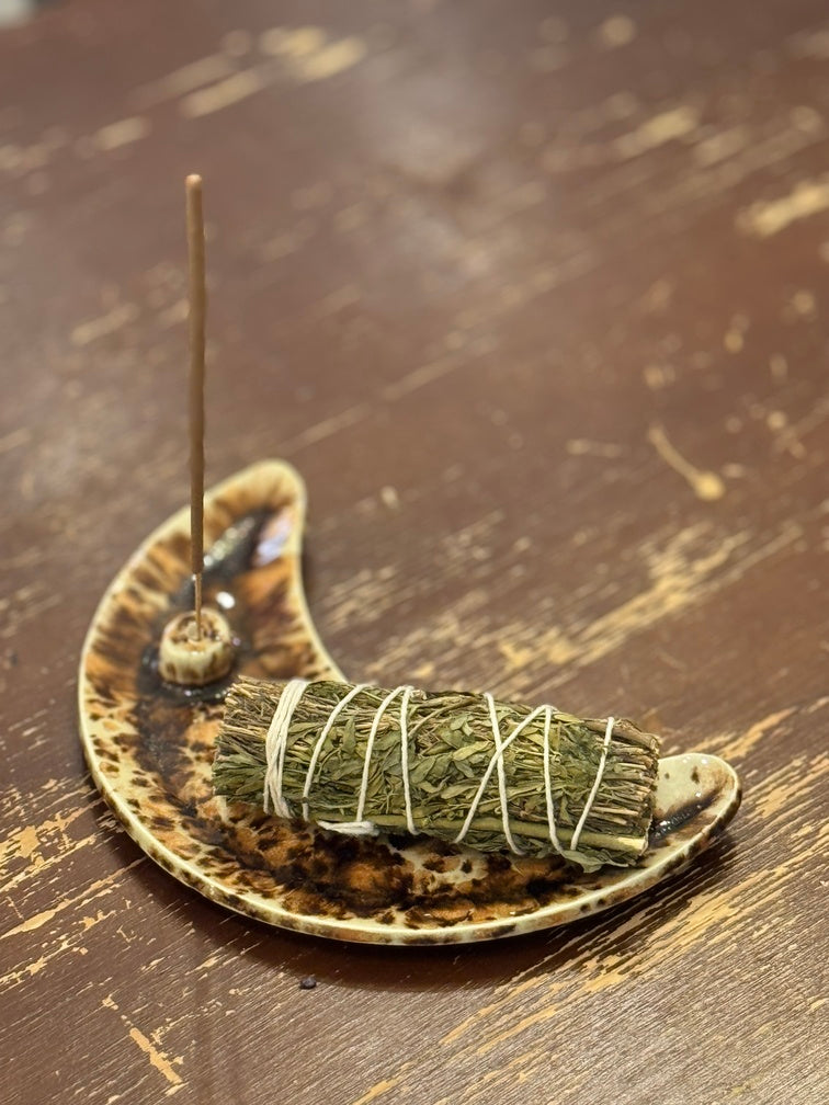 La luna sostiene tus inciensos y sahumerios mientras conectas con la energía cíclica del universo.