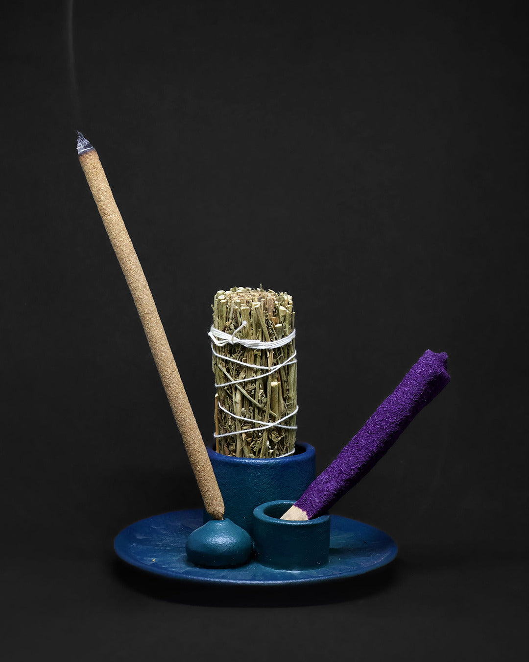 Multifuncional y divino. Tiene espacio para colocar incienso, palo santo, sahumerios y cristales.