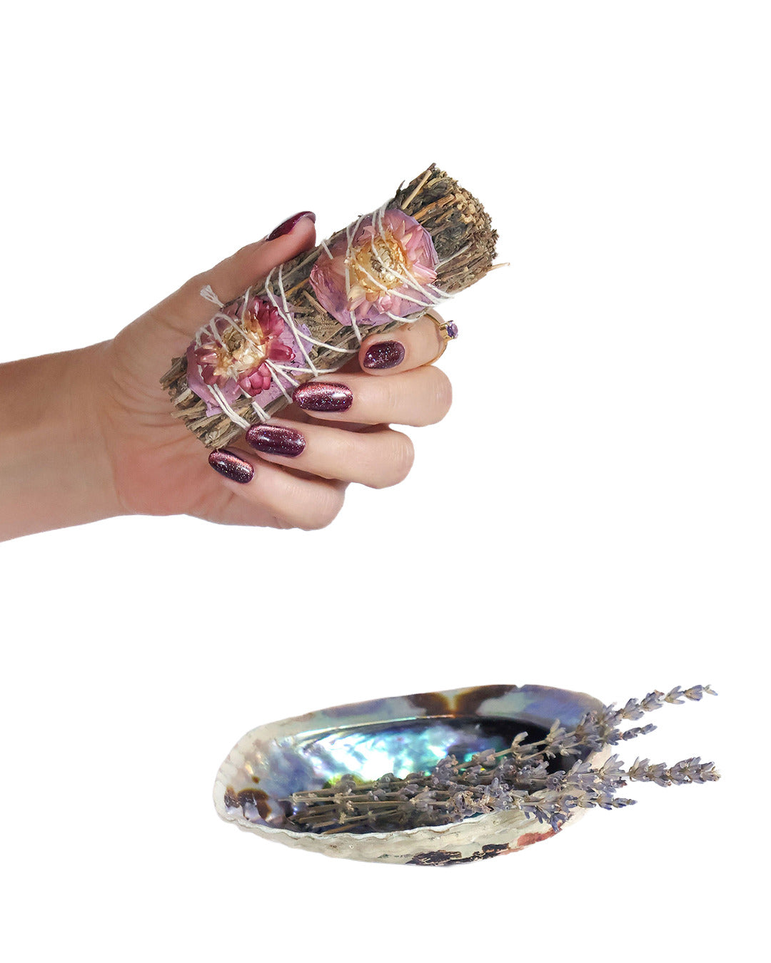 Para nuevos inicios y cambios positivos utiliza este sahumerio “Lavender Sunset” con flores naturales de lavanda, paper flowers y salvia.
